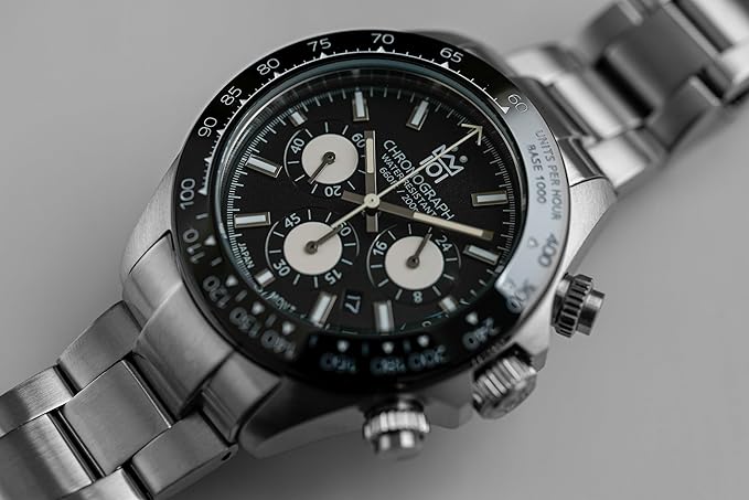 - Materials: Stainless steel case and band; ceramic bezel; mineral glass dial window